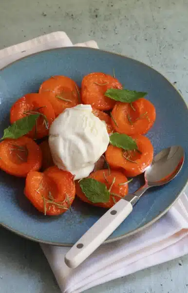 Je vous invite à découvrir la recette de la poêlée d’abricots au romarin pour terminer votre repas sur une touche sucrée et délicatement parfumé au romarin, ca vous dit?